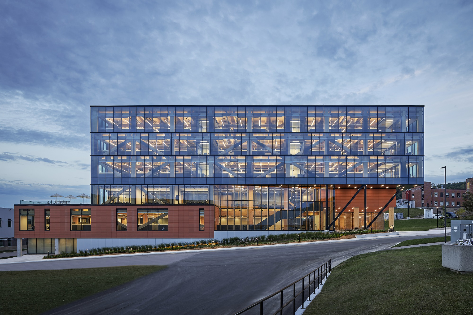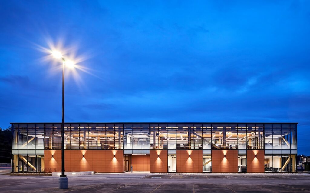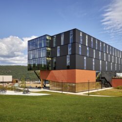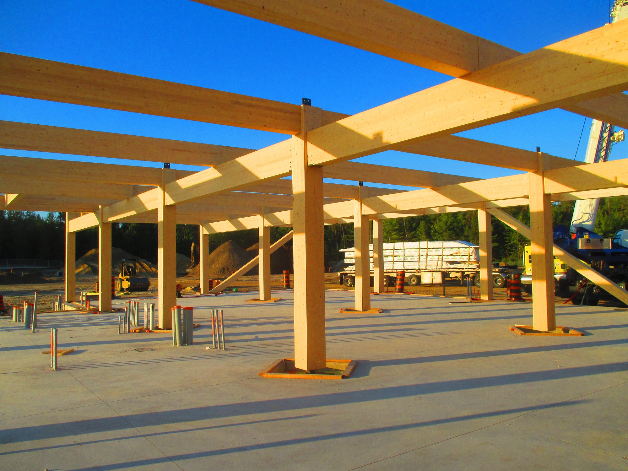 The mass timber structures at the Minwamon Building, Support Facility and Science Collaboration Centre are the first modern mass timber buildings constructed on a federal site, and construction of the Support Facility and Science Collaboration Centre was supported through a grant from the Green Construction through Wood (GCWood) Program. This program is administered by Natural Resources Canada to increase the use of wood in infrastructure projects as a sustainable construction material and supports Canada’s transition to a low-carbon economy.