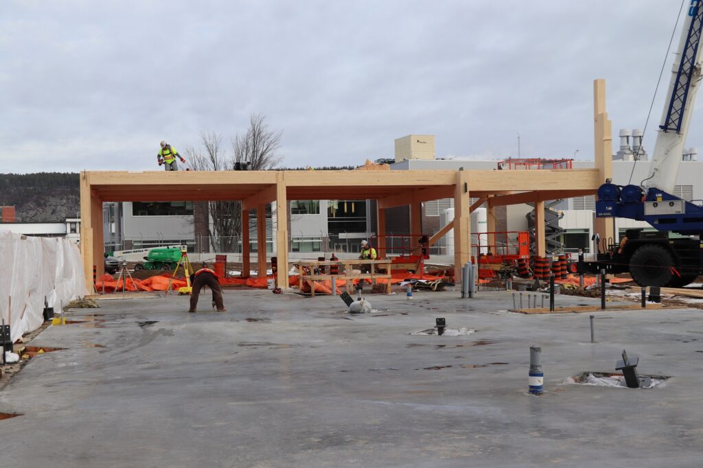 Three new buildings that have already been completed under the revitalization efforts were made using mass timber products sourced right here in Canada. The mass timber is a renewable resource that reduces the carbon footprint of the Chalk River Laboratories campus.